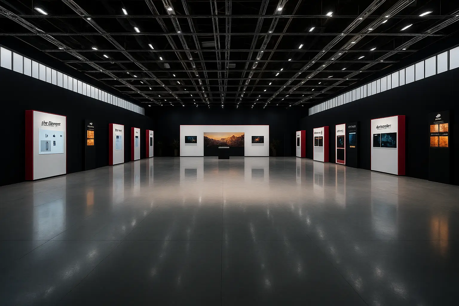 Launch-ready micro-gallery that spotlights hero units with focal lighting and clear visitor flow in a compact footprint.